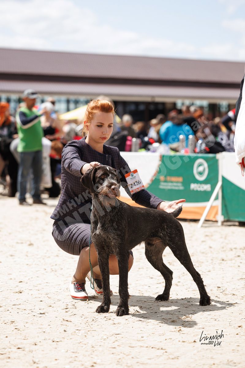1 место в ринге кобелей младшей группы на Всероссийской выставке охотничьих собак породы Deutsch-Drahthaar (немецкий дратхаар).